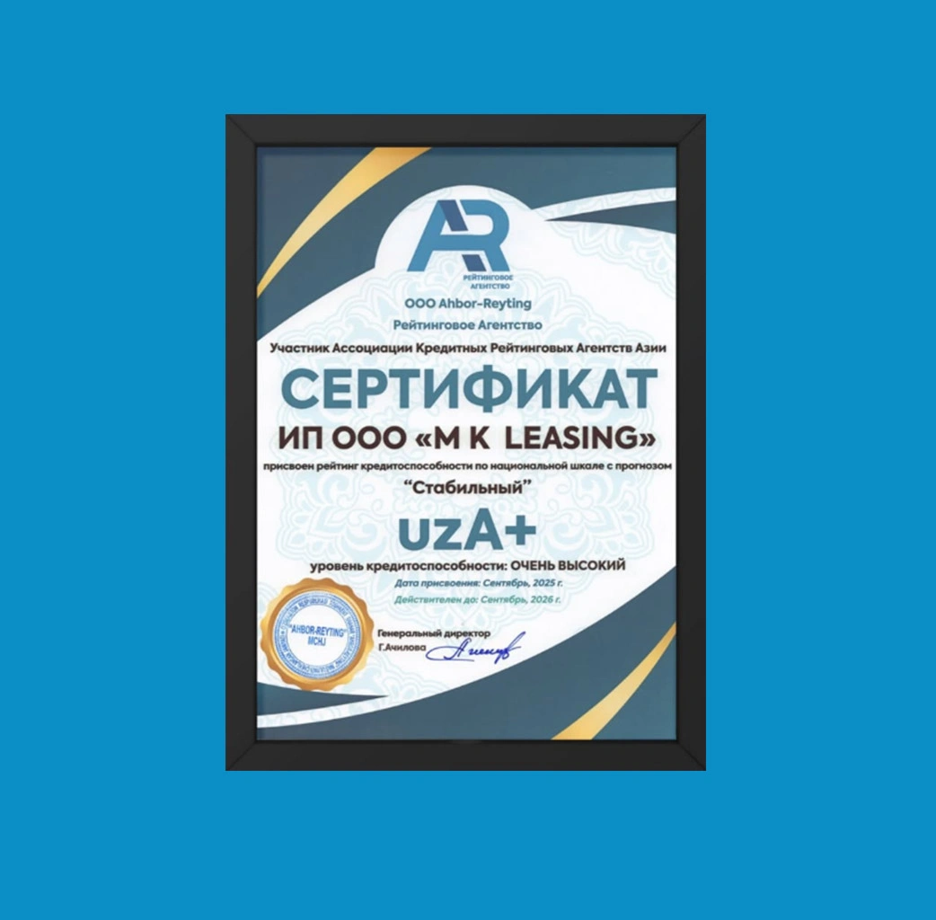 MK Leasing Uzbekistan получила такую высокую оценку благодаря стабильному росту лизингового портфеля, эффективному управлению рисками и устойчивой финансовой позиции.
